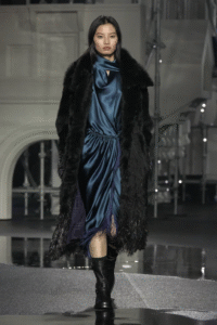 - Faux-fur accents and modern silhouettes give classic pieces a contemporary twist.