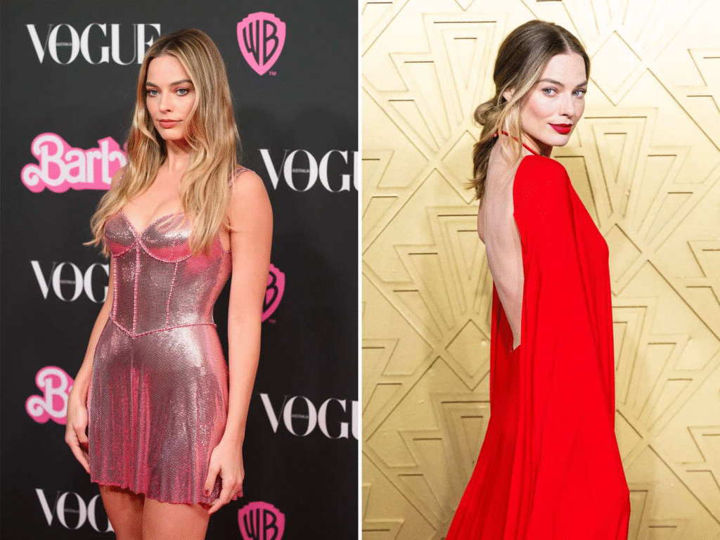 One of Robbie’s most talked-about style chapters arrived during the global press tour for Barbie. As she promoted the film, she embraced a playful aesthetic inspired by the iconic doll’s wardrobe. Pink gowns, vintage silhouettes, and sparkling accessories became a recurring theme, creating a fashion narrative that delighted fans and fashion critics alike.