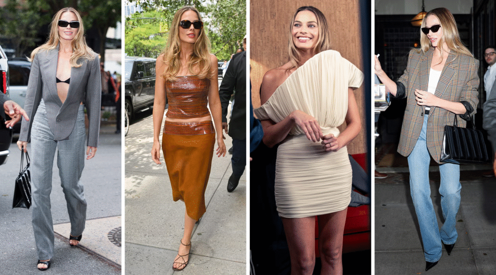 Although she is best known for glamorous red carpet appearances, Robbie’s off-duty style is equally admired. Her everyday outfits often feature relaxed silhouettes, minimalist accessories, and understated color palettes.